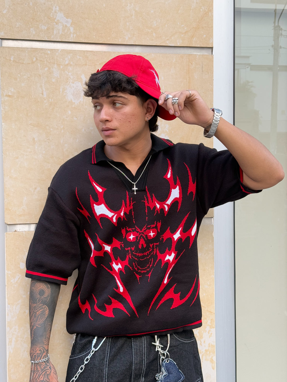 Camiseta Tejida Skeleton - XS / Negro/Rojo / Boxy