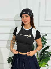 Top confeccionado a base de algodón licrado, tela fría, diseñado para ofrecer un ajuste que combina comodidad y estilo de manera excepcional. Estampado elaborado en Serigrafia el cual garantiza una alta calidad con una durabilidad y resistencia sobresalientes a lo largo del tiempo.